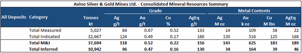 Table 3. Avino Silver & Gold Mines Ltd. - Mineral Resources