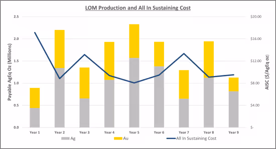 Figure 1: LOM Production and All In Sustaining Cost